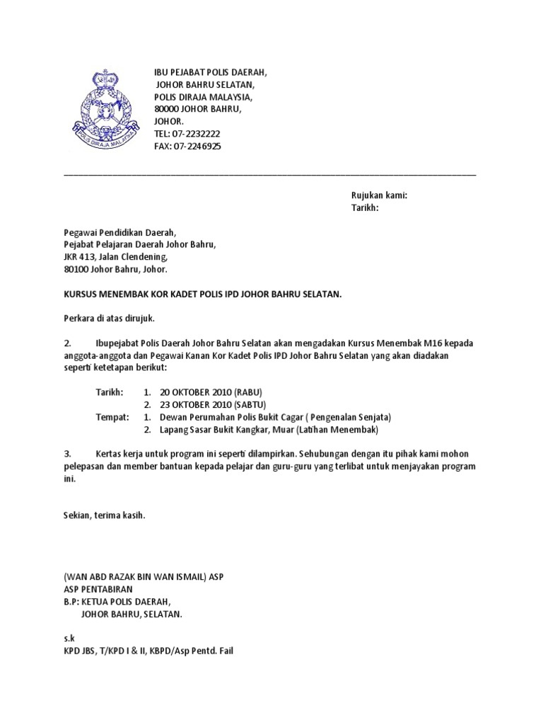 Surat Edaran Pikm Ke 23 2019 Jadual Program Latihan Certified Security Guard Csg Bagi Bulan Januari Hingga Jun 2020 Pikm My from www.pikm.my Siapa yang akan dilatih ? Hal yang harus diperhatikan dalam menyusun program latihan: Mengandungi contoh format surat memohon latihan kebakaran (fire drill) kepada pihak balai bomba dan penyelamat berserta kertas kerja program. Ikut contoh surat tolak tawaran untuk latihan industri, internship atau praktikal. Percobaan dengan menembak jarak 5 m. Diharap agar perkongsian contoh surat permohonan latihan industri (praktikal) ini dapat memudahkan urusan anda. Selamat siang para pencari ilmu yang selalu bersemangat, berikut saya berikan secara ikhlas program latihan saya di penggalang sd. Hal itu dilakukan setelah pssi mengeluarkan surat keputusan terkait.